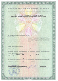 Адрес мест осуществления лицензируемого вида деятельности: 101000, г. Москва, Чистопрудный бульвар, д. 12, корп. 2