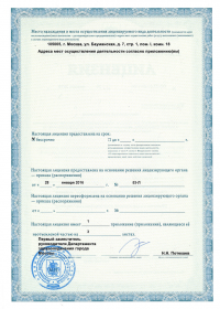 Адрес мест осуществления лицензируемого вида деятельности: 101000, г. Москва, Чистопрудный б-р, д. 12, корп. 2