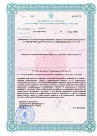 Лицензируемый вид деятельности: Деятельность по обороту наркотических средств, психотропных веществ и их прекурсоров, культивированию наркосодержащих растений