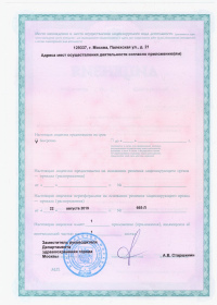 Адрес мест осуществления лицензируемого вида деятельности: 117335, Москва район, г. Москва, ул. Гарибальди, д.15