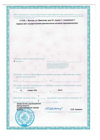 | Лицензии | 25.02.2020 Номер лицензии: ЛО-77-01-019661 Лицензируемый вид деятельности: Медицинская деятельность Дата внесения записи в реестр: 25.02.2020 Номер приказа о предоставлении лицензии: 139-Л Дата приказа о предоставлении лицензии: 25.02.2020 Адрес мест осуществления лицензируемого вида деятельности: 117335, г. Москва, улица Вавилова, дом 91, корп. 1, пом. V 20.11.2019 Номер лицензии: ЛО-77-01-019117 Лицензируемый вид деятельности: Медицинская деятельность Дата внесения записи в реестр: 20.11.2019 Номер приказа о предоставлении лицензии: 962-Л Дата приказа о предоставлении лицензии: 20.11.2019 Адрес мест осуществления лицензируемого вида деятельности: 117335, г. Москва, улица Вавилова, дом 91, корп. 1, пом. V 07.03.2019 Номер лицензии: ЛО-77-01-017646 Лицензируемый вид деятельности: Медицинская деятельность Дата внесения записи в реестр: 07.03.2019 Номер приказа о предоставлении лицензии: 187-Л Дата приказа о предоставлении лицензии: 07.03.2019 Адрес мест осуществления лицензируемого вида деятельности: 117335, г. Москва, улица Вавилова, дом 91, корп. 1, пом. V |