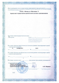 Адрес мест осуществления лицензируемого вида деятельности: 127322, г. Москва, ул. Яблочкова, д. 12
