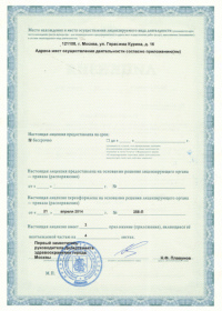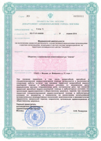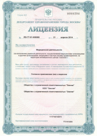 | Лицензии | 05.04.2018 Номер лицензии: ЛО-77-01-015875 Лицензируемый вид деятельности: Медицинская деятельность Дата внесения записи в реестр: 05.04.2018 Номер приказа о предоставлении лицензии: 230-Л Дата приказа о предоставлении лицензии: 05.04.2018 Адрес мест осуществления лицензируемого вида деятельности: 121374, г. Москва, Можайское шоссе, д. 4, корп. 1 |