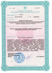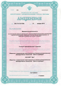 Многопрофильный медицинский центр. Занимается лечением женского и мужского бесплодия с применением инновационных технологий. Предлагает комплексные программы в направлении семейной медицины, включая вызов врача на дом (в том числе проведение УЗИ диагностики на дому); услуги по профилактике заболеваний и восстановительной медицине; оформление документов - больничных листов, справок в бассейн, для детских садов, школ и лагерей детского отдыха; широкий спектр дополнительных услуг индустрии красоты. В клинике проводится УЗИ, дуплексное сканирование,