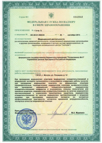 | Лицензии | 21.02.2018 Номер лицензии: ФС-99-01-009493 Лицензируемый вид деятельности: Медицинская деятельность Дата внесения записи в реестр: 21.02.2018 Номер приказа о предоставлении лицензии: 1098 Дата приказа о предоставлении лицензии: 21.02.2018 Адрес мест осуществления лицензируемого вида деятельности: 119121, г. Москва, ул. Плющиха, д. 14 07.08.2017 Номер лицензии: ФС-77-03-000128 Лицензируемый вид деятельности: Деятельность по обороту наркотических средств, психотропных веществ и их прекурсоров, культивированию наркосодержащих растений Дата внесения записи в реестр: 07.08.2017 Номер приказа о предоставлении лицензии: 1042/17 Дата приказа о предоставлении лицензии: 07.08.2017 Адрес мест осуществления лицензируемого вида деятельности: 119121, г. Москва, ул. Плющиха, дом 14 15.08.2016 Номер лицензии: ФС-77-02-001079 Лицензируемый вид деятельности: Фармацевтическая деятельность Дата внесения записи в реестр: 15.08.2016 Номер приказа о предоставлении лицензии: 944/16 Дата приказа о предоставлении лицензии: 15.08.2016 Адрес мест осуществления лицензируемого вида деятельности: 119121, г. Москва, ул. Плющиха, д.14 |