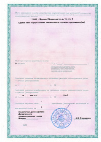 Адрес мест осуществления лицензируемого вида деятельности: 119048, г. Москва, ул. Ефремова, д. 12, стр. 2