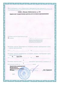 | Лицензии | 17.05.2018 Номер лицензии: ЛО-77-01-016055 Лицензируемый вид деятельности: Медицинская деятельность Дата внесения записи в реестр: 17.05.2018 Номер приказа о предоставлении лицензии: 347-Л Дата приказа о предоставлении лицензии: 17.05.2018 Адрес мест осуществления лицензируемого вида деятельности: 109341, г. Москва, ул. Перерва, д. 52. стр. 1 02.03.2017 Номер лицензии: ЛО-50-01-008451 Лицензируемый вид деятельности: Медицинская деятельность Дата внесения записи в реестр: 02.03.2017 Номер приказа о предоставлении лицензии: 291 Дата приказа о предоставлении лицензии: 02.03.2017 Адрес мест осуществления лицензируемого вида деятельности: 140150, Московская область, Раменский р-н, пос. Быково, ул. Аэропортовская, д. 14, стр. 1 |