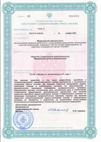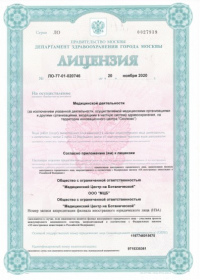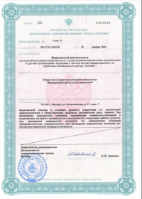 Лицензии и сертификаты клиники «Медицинский центр на Ботанической»