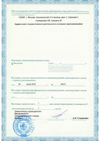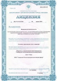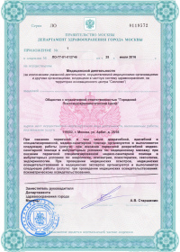 | Лицензии | 12.11.2018 Номер лицензии: ЛО-77-01-016991 Лицензируемый вид деятельности: Медицинская деятельность Дата внесения записи в реестр: 12.11.2018 Номер приказа о предоставлении лицензии: 849-Л Дата приказа о предоставлении лицензии: 12.11.2018 Адрес мест осуществления лицензируемого вида деятельности: 119002, г. Москва, ул. Арбат, д. 25/36 |