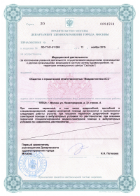 | Лицензии | 12.11.2015 Номер лицензии: ЛО-77-01-011268 Лицензируемый вид деятельности: Медицинская деятельность Дата внесения записи в реестр: 12.11.2015 Номер приказа о предоставлении лицензии: 659-Л Дата приказа о предоставлении лицензии: 12.11.2015 Адрес мест осуществления лицензируемого вида деятельности: 109029, г. Москва, ул. Нижегородская, д. 32, строен. А |