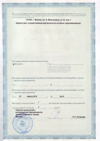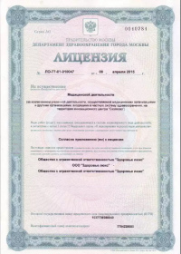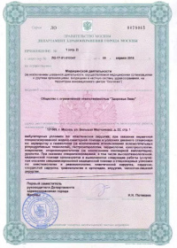 | Лицензии | 13.05.2019 Номер лицензии: ЛО-77-01-018012 Лицензируемый вид деятельности: Медицинская деятельность Дата внесения записи в реестр: 13.05.2019 Номер приказа о предоставлении лицензии: 341-Л Дата приказа о предоставлении лицензии: 13.05.2019 Адрес мест осуществления лицензируемого вида деятельности: 121069, г. Москва, ул. Большая Молчановка, д. 32, стр. 1 02.04.2019 Номер лицензии: ЛО-77-02-010187 Лицензируемый вид деятельности: Фармацевтическая деятельность Дата внесения записи в реестр: 02.04.2019 Номер приказа о предоставлении лицензии: 252-Л Дата приказа о предоставлении лицензии: 02.04.2019 Адрес мест осуществления лицензируемого вида деятельности: 121069, г. Москва, ул. Большая Молчановка, д. 32, стр. 1 |