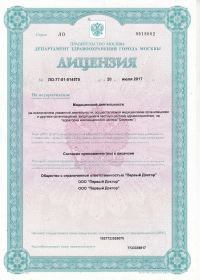 Лицензии и сертификаты клиники «Медицинский центр Первый Доктор в Отрадном»