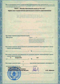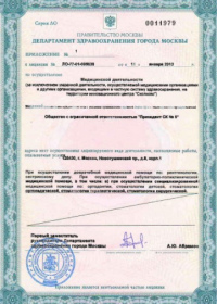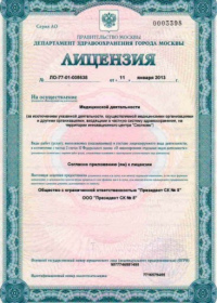 | Лицензии | 11.01.2013 Номер лицензии: ЛО-77-01-005638 Лицензируемый вид деятельности: Медицинская деятельность Дата внесения записи в реестр: 11.01.2013 Номер приказа о предоставлении лицензии: 8-Л Дата приказа о предоставлении лицензии: 11.01.2013 Адрес мест осуществления лицензируемого вида деятельности: 125430, г. Москва, Новотушинский пр., д.8, корп.1 11.01.2013 Номер лицензии: ЛО-77-01-005638 Лицензируемый вид деятельности: Медицинская деятельность Дата внесения записи в реестр: 11.01.2013 Номер приказа о предоставлении лицензии: 8-Л Дата приказа о предоставлении лицензии: 11.01.2013 Адрес мест осуществления лицензируемого вида деятельности: 125430, г. Москва, Новотушинский пр., д.8, корп.1 |