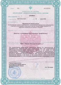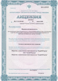 | Лицензии | 23.06.2009 Номер лицензии: ЛО-77-01-001481 Лицензируемый вид деятельности: Медицинская деятельность Дата внесения записи в реестр: 23.06.2009 Номер приказа о предоставлении лицензии: 732 Дата приказа о предоставлении лицензии: 23.06.2009 Адрес мест осуществления лицензируемого вида деятельности: 125367, Иваньковское шоссе, д. 7 |