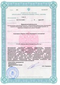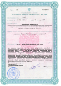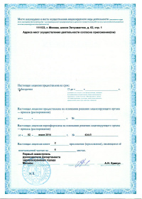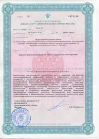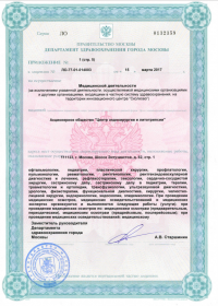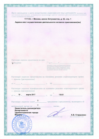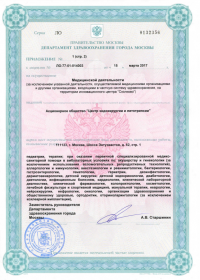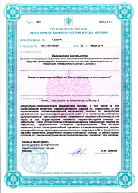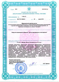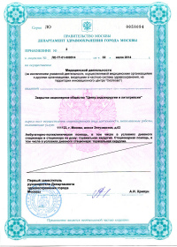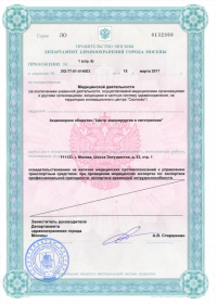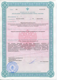 | Лицензии | 20.03.2018 Номер лицензии: ЛО-77-01-015784 Лицензируемый вид деятельности: Медицинская деятельность Дата внесения записи в реестр: 20.03.2018 Номер приказа о предоставлении лицензии: 188-Л Дата приказа о предоставлении лицензии: 20.03.2018 Адрес мест осуществления лицензируемого вида деятельности: 111123, г. Москва, шоссе Энтузиастов, д.62 23.03.2017 Номер лицензии: ФС-99-01-009373 Лицензируемый вид деятельности: Медицинская деятельность Дата внесения записи в реестр: 23.03.2017 Номер приказа о предоставлении лицензии: 2179 Дата приказа о предоставлении лицензии: 23.03.2017 Адрес мест осуществления лицензируемого вида деятельности: 111123, г. Москва, шоссе Энтузиастов, д. 62, стр. 1 22.03.2017 Номер лицензии: ЛО-77-03-000673 Лицензируемый вид деятельности: Деятельность по обороту наркотических средств, психотропных веществ и их прекурсоров, культивированию наркосодержащих растений Дата внесения записи в реестр: 22.03.2017 Номер приказа о предоставлении лицензии: 155-Л Дата приказа о предоставлении лицензии: 22.03.2017 Адрес мест осуществления лицензируемого вида деятельности: 111123, г. Москва, шоссе Энтузиастов, д.62, стр.1 20.03.2017 Номер лицензии: ЛО-77-02-008405 Лицензируемый вид деятельности: Фармацевтическая деятельность Дата внесения записи в реестр: 20.03.2017 Номер приказа о предоставлении лицензии: 146-Л Дата приказа о предоставлении лицензии: 20.03.2017 Адрес мест осуществления лицензируемого вида деятельности: 111123, г. Москва, Шоссе Энтузиастов, д.62, стр.1 21.03.2011 Номер лицензии: ЛО-77-01-003553 Лицензируемый вид деятельности: Медицинская деятельность Дата внесения записи в реестр: 21.03.2011 Номер приказа о предоставлении лицензии: 229 Дата приказа о предоставлении лицензии: 21.03.2011 Адрес мест осуществления лицензируемого вида деятельности: 111123, г. Москва, шоссе Энтузиастов, д. 62, стр. 1 20.01.2009 Номер лицензии: ЛО-77-01-000983 Лицензируемый вид деятельности: Медицинская деятельность Дата внесения записи в реестр: 20.01.2009 Номер приказа о предоставлении лицензии: 22 Дата приказа о предоставлении лицензии: 20.01.2009 Адрес мест осуществления лицензируемого вида деятельности: 111123, г. Москва, Шоссе Энтузиастов, д. 62, стр. 1 22.02.2007 Номер лицензии: 77-01-000906 Лицензируемый вид деятельности: Медицинская деятельность Дата внесения записи в реестр: 22.02.2007 Номер приказа о предоставлении лицензии: Дата приказа о предоставлении лицензии: Адрес мест осуществления лицензируемого вида деятельности: 111123, г. Москва, Шоссе Энтузиастов, д. 62 |
