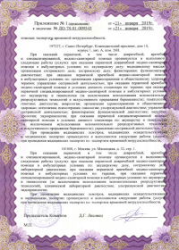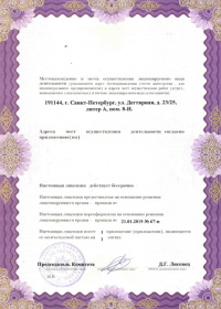 | Лицензии | 21.01.2019 Номер лицензии: ЛО-78-01-009545 Лицензируемый вид деятельности: Медицинская деятельность Дата внесения записи в реестр: 21.01.2019 Номер приказа о предоставлении лицензии: 67-п Дата приказа о предоставлении лицензии: 21.01.2019 Адрес мест осуществления лицензируемого вида деятельности: 101000, г. Москва, ул. Мясницкая, д. 32, стр. 1 |